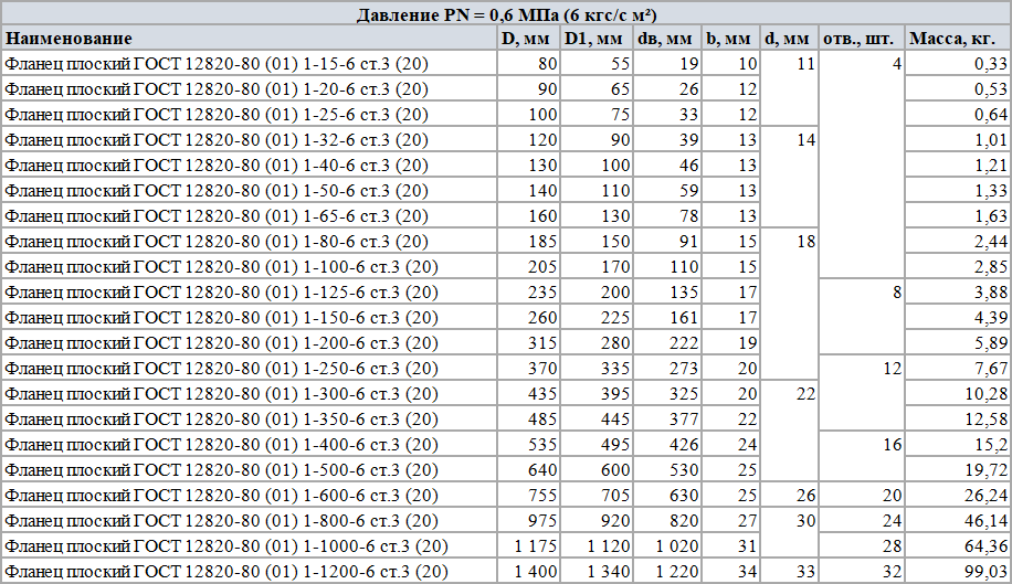 Плоские стальные фланцы, изготовленные с соблюдением всех требований ГОСТ 12820, обладают следующими параметрами: